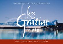 Lux Gratiae valaisee jo seitsemännen kerran Naantalin tapahtumasyksyä 25.-28.10.2018. Tänä vuonna tapahtuma saa kansainvälisiä esiintyjiä. Birgittalaisuuden syntysijoilta Vadstenasta saapuva esiintyjäryhmä luo Naantalin kirkkoon musiikkidraaman Pyhän Birgitan elämästä. Birgittalaisista ja Pyhästä Birgitasta on tarjolla myös tutkimustietoa FT Eva Ahl-Wariksen luennolla. Sinisen syksyn tunnelmasta saa puolestaan nauttia Naantalin Kylpylässä huippusopraano Mari Palon ja upean jazztrion seurassa. Rymättylän kirkko on puolestaan näyttämönä huikealle kitarataiteilija Otto Toloselle, jonka konsertissa kuullaan herkkää klassista kitaramusiikkia. Aikaisempien vuosien tapaan liikunnan iloa sekä hiljaisuutta ja rauhaa voi hakea Jaakobin pyhiinvaellusreitiltä.