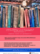 Viikon päästä la-su 7.-8.12. klo 12-16 Naantalin taidehuoneella yhdistyksemme pop-up kirja-antikvaari täydennettynä Puru-kollektiivin uusilla kirjoilla. Lukemista itselle ja pukinkonttiin. Sunnuntaina Mirkka Mattheiszen signeeraamassa kirjojaan! Häneltä ilmestyi 17.10.2019 runoteos ”Lokki. Erään kohtaamisen muistiinpanot.” Ostamalla kirja-antikvaaristamme autat tukemaan naantalilaista kulttuurielämää Naantalin Kulttuuritaloyhdistyksen kautta. Tapahtumiamme ovat mm. Lasten joulu - Tuhkamarkkinat - Birgitan Yö - Kirkkopuisto soi – Trumputtajat – Naantali Jazz Week ym. Naantalin Kulttuuritaloyhdistys ry Vanhankaupungin Lasten Joulu su 8.12. klo 12-16. Säävaraus. |