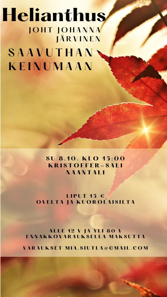 Sunnuntaina 8.10. klo 15 Kristoffer-salissa Naantalissa