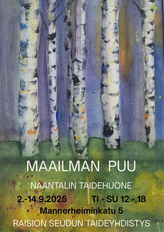 Maailman puu -Raision seudun taideyhdistyksen näyttely 2.-14.9.2025 Naantalin taidehuoneella