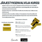 Kurssin suorittamisen jälkeen voit hakea järjestyksenvalvojakorttia poliisilta (voimassa 5 vuotta, korttimaksu 82 € ei sisälly koulutukseen). Ilmoittaudu viimeistään 20.4. Ota yhteyttä ja ilmoittaudu mahdollisimman pian: - Leena Salo, leena.salo@outlook.com